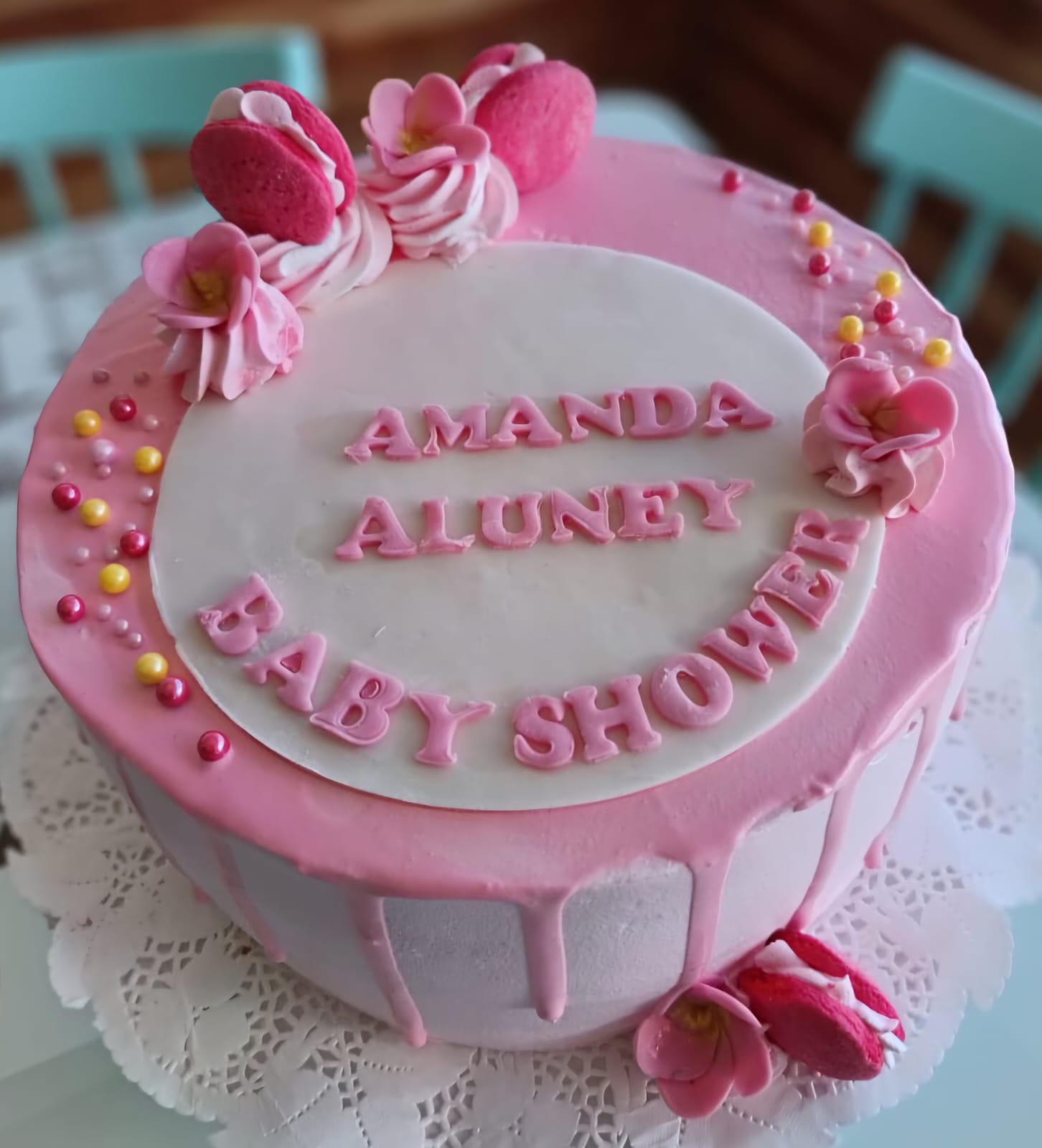 Torta preparada con un bizcocho de Vainilla, crema chantilly, rellena con piña y mermelada de piña.