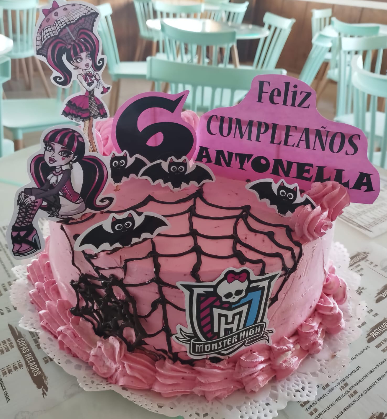 Torta preparada con un bizcocho de chocolate, ganach de chocolate, crema chantilly con menta.