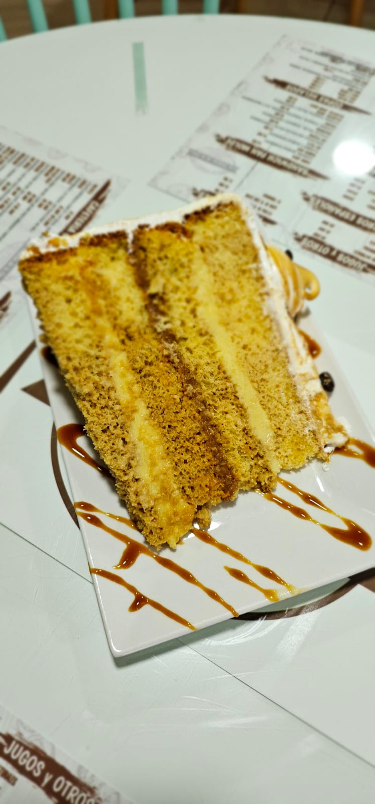 Torta 3 leches preparada con bizcocho de vainilla, remojo de leche evaporada, leche condensada y crema pastelera. Torta 4 leches preparada con bizcocho de vainilla, remojo de leche evaporada, leche condensada, crema pastelera y Manjar. Torta 4 leches Café preparada con bizcocho de vainilla, remojo de leche evaporada, leche condensada, crema pastelera, café y Manjar. Torta 4 leches Frambuesa preparada con bizcocho de vainilla, remojo de leche evaporada, leche condensada, crema pastelera, frambuesas y Manjar.